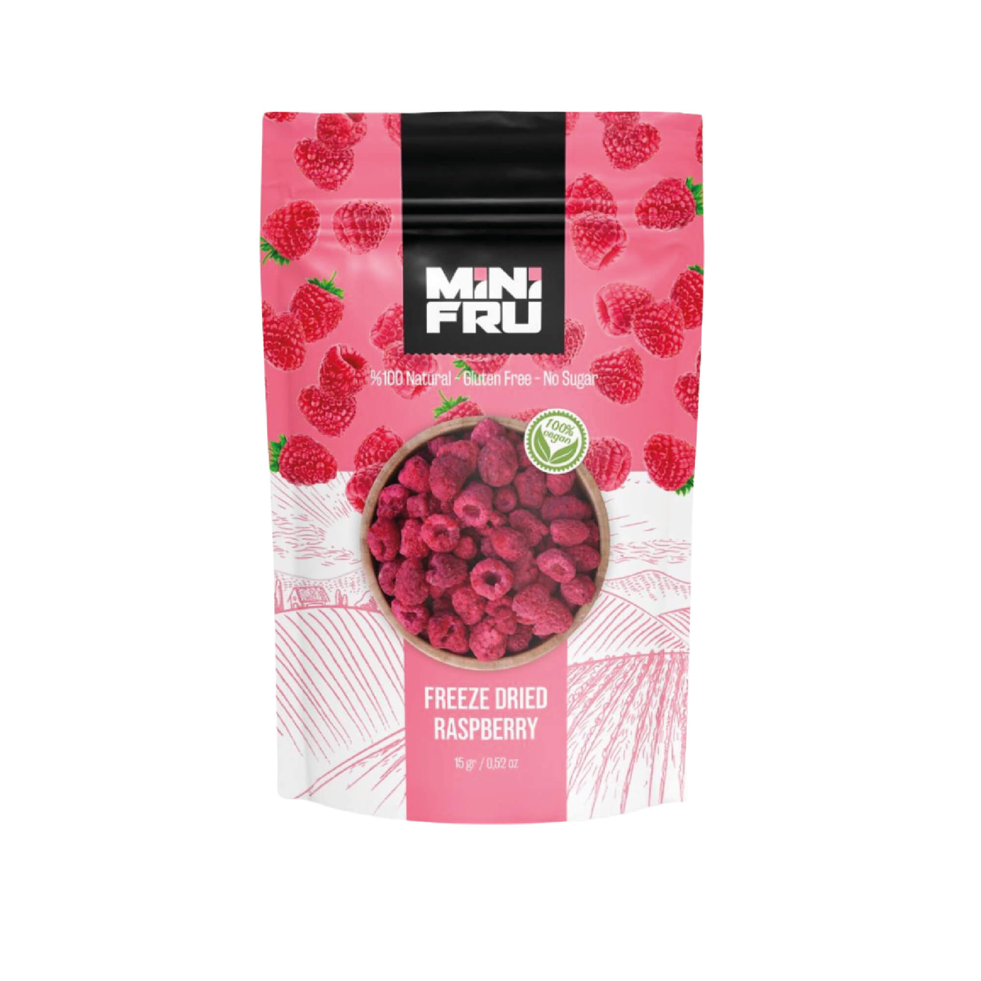 MiniFRU freeze dried frambuaz, doğanın en canlı ve yoğun lezzetlerinden birini her an yanınıza taşıyor. Özenle uygulanan dondurularak kurutma süreci sayesinde, frambuazın kendine has ekşimsi tatlılığı ve besleyici özellikleri korunur. Çıtır dokusuyla tek başına benzersiz bir atıştırmalık olan bu lezzet, aynı zamanda tatlılar, içecekler ve kahvaltılık tariflere renk ve aroma katar. MiniFRU freeze dried frambuaz ile doğal ve etkileyici bir tat deneyimine hazır olun!