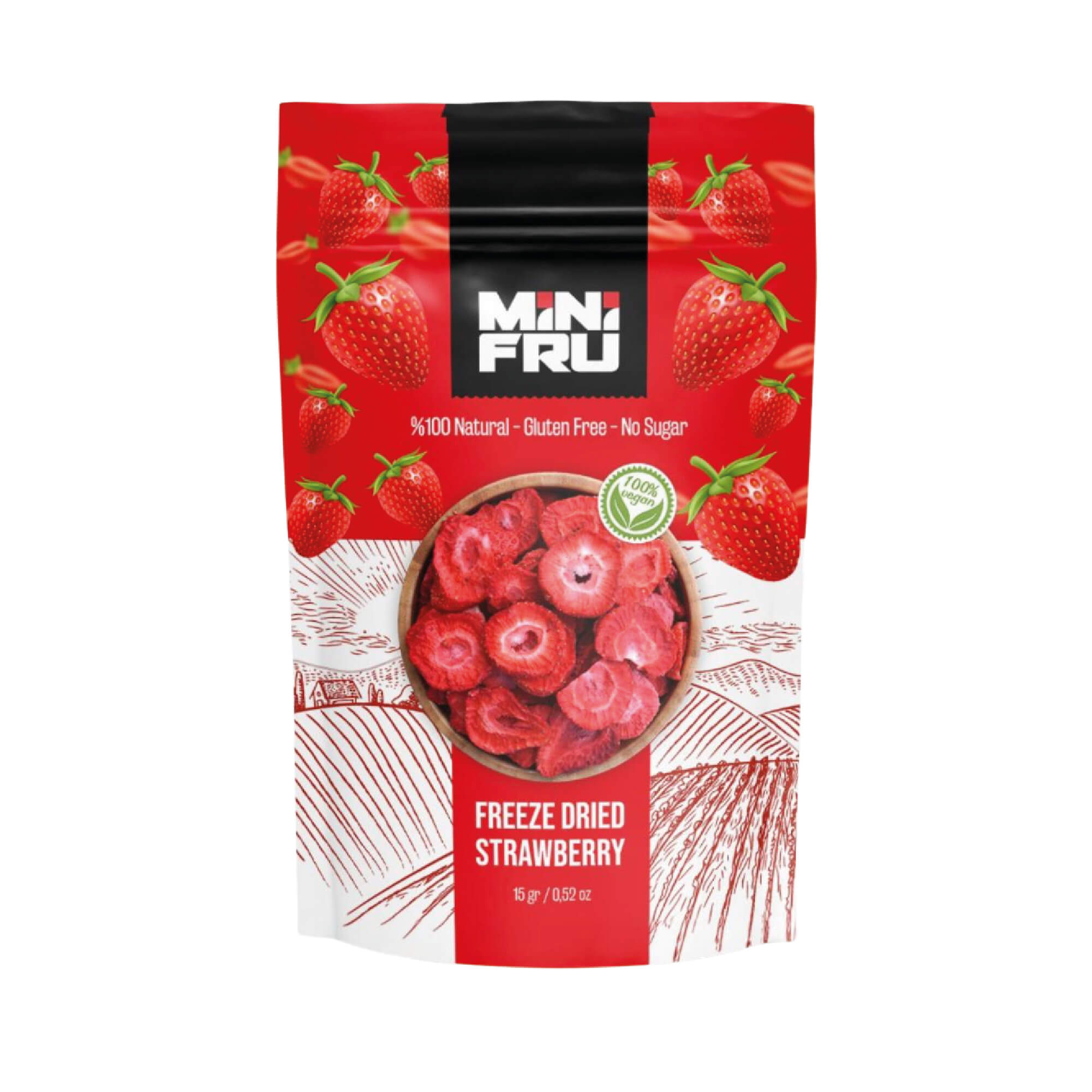 MiniFRU freeze dried bütün çilekler, doğallığı ve lezzeti bir araya getiren eşsiz bir atıştırmalık deneyimi sunar. Özenle seçilen çilekler, dondurularak kurutma işlemiyle tazeliğini ve besleyici değerlerini korurken, yoğun aromasıyla damakları şenlendirir. Tek başına keyifle tüketilebilir ya da kahvaltı kaselerine, tatlılara ve içecek tariflerine görsel ve lezzetli bir dokunuş katar. MiniFRU bütün çilekler, sağlıklı ve doğal atıştırmalık dünyasına yeni bir boyut kazandırıyor!